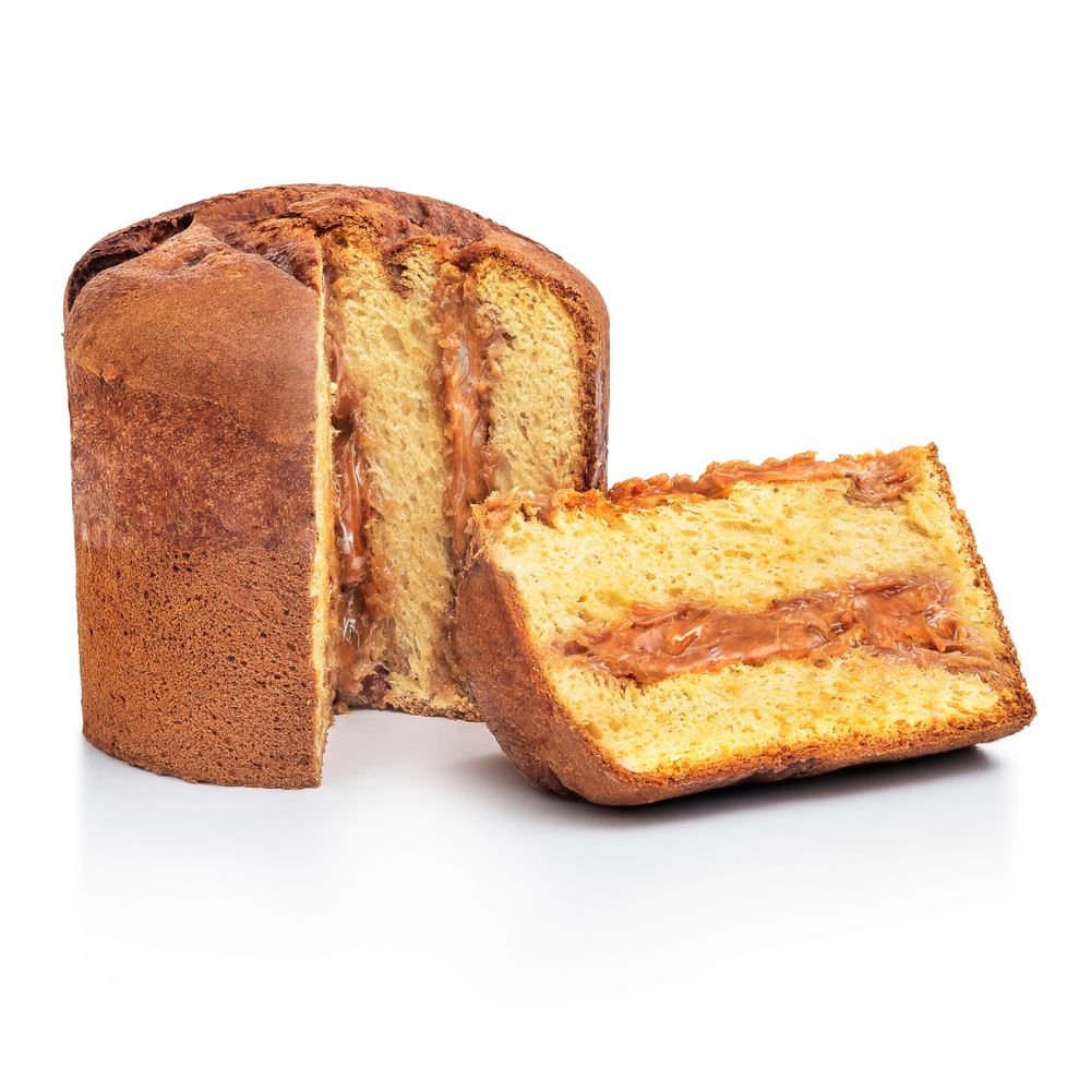Produzido artesanalmente com massa de tripla fermentação natural, este panettone traz um recheio generoso de doce de leite tipo argentino, encorpado e cremoso.