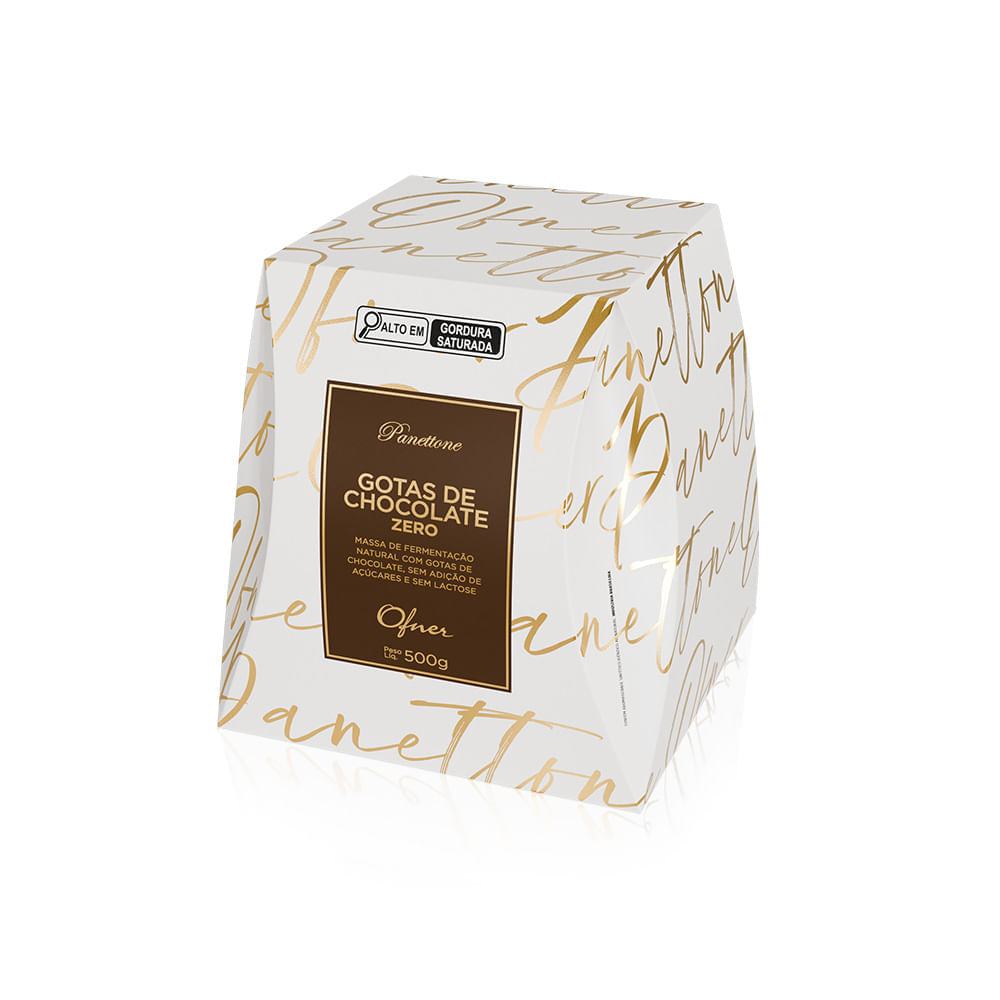 Panettone Milanês artesanal, feito com massa de tripla fermentação natural, gotas de chocolate, sem açúcar adicionado e sem lactose.